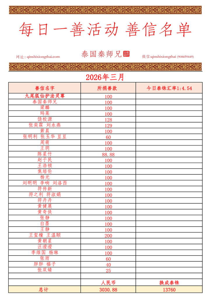 2026年三月每日一善功德名单