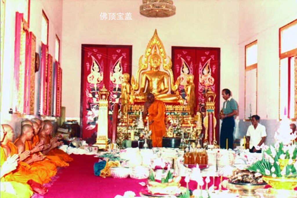 佛顶宝盖已经存在几十年之久,在大雄宝殿中的主佛-初佛的头顶上。从佛历2519年至今(今年是佛历2568年至今有49年了)师尊不知道在里面举行过多少次的加持法会,佛顶宝盖中的宝珠吸收着每一次的加持力量。因此具备有超强的磁场力量。只要有点禅修能力的人都可以感受到超强磁场力量。
