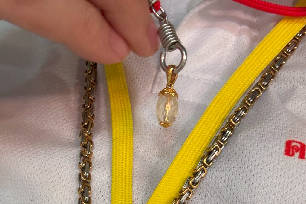 一件独一无二的圣物,使用师尊寺庙塔崇寺大雄宝殿中主佛(初佛)头顶的佛顶宝盖中的宝珠制作而成。