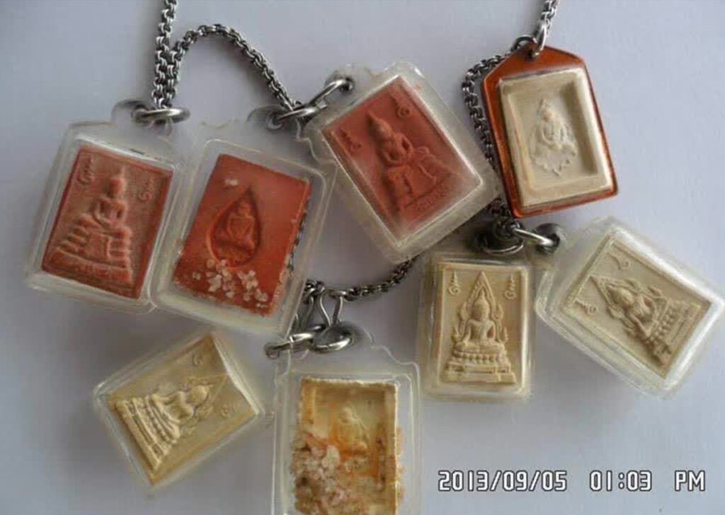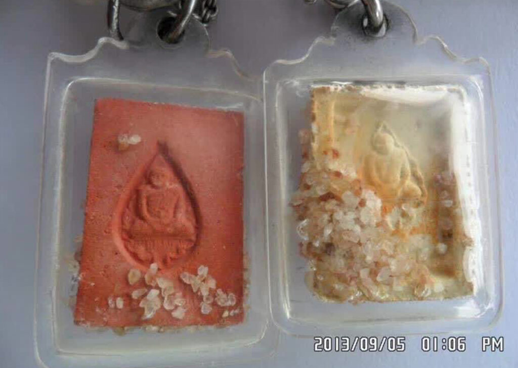 师尊法体上经常出现出舍利子,善信们供奉的师尊头发,也大多都幻化出舍利子,就连师尊在世时吃过的槟榔渣及师尊所制作的各种佛牌圣物上,也都经常出现舍利子。