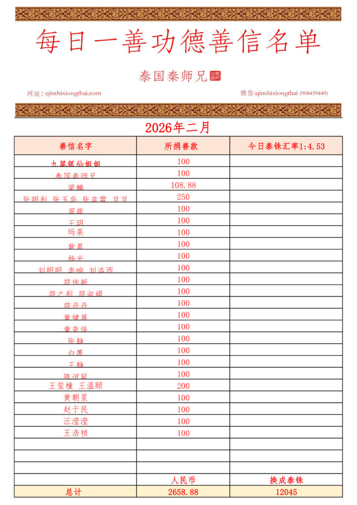 2026年二月每日一善功德名单
